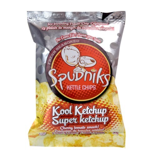 Chips - Spudniks Kool Ketchup Kettle Chips: Spudniks gluten free, no trans fat Kettle Chips will appeal to one and all! With their use of premium seasoning, and MSG free production, Spudniks has revolutionized the art of the kettle chip. To enhance the fresh seasoning and aroma, serve the chips warm.