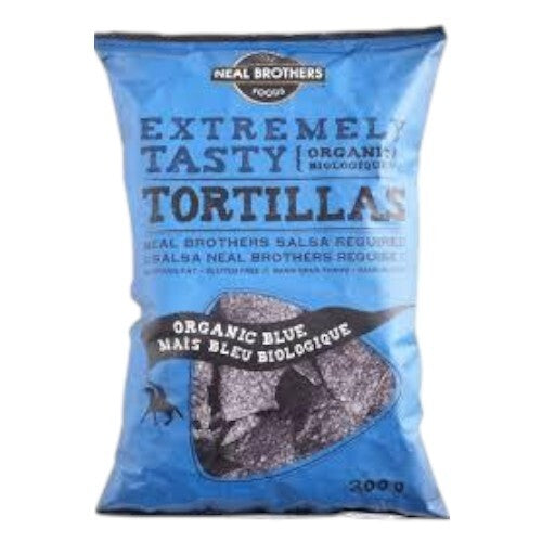 Tortillas - Neal Brothers ORGANIC BLUE CORN TORTILLAS - What makes these chips so unique? It's the organic blue corn giving them the traditional taste and rich deep colour.
